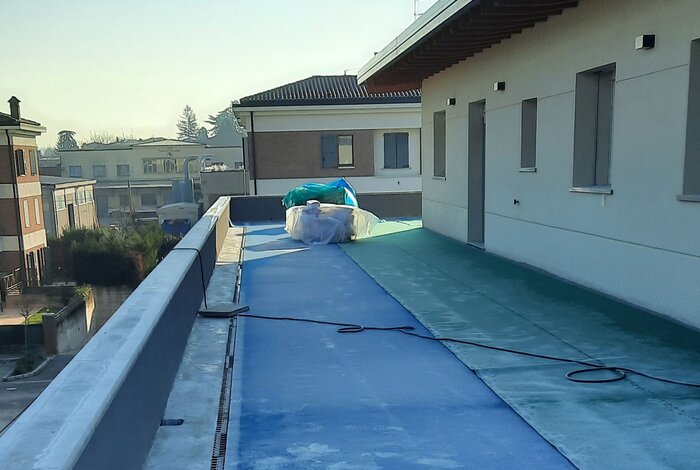 Nel nuovo complesso residenziale di pregio situato in provincia di Bologna, il progetto ha previsto la demolizione di un capannone esistente e la costruzione di due palazzine. All’interno delle terrazze private e delle aree comuni è stata installata la griglia invisibile REDI, una soluzione che consente ai progettisti e agli architetti di realizzare spazi esterni eleganti e funzionali, garantendo una gestione delle acque superficiali efficiente e mantenendo la continuità estetica della pavimentazione.