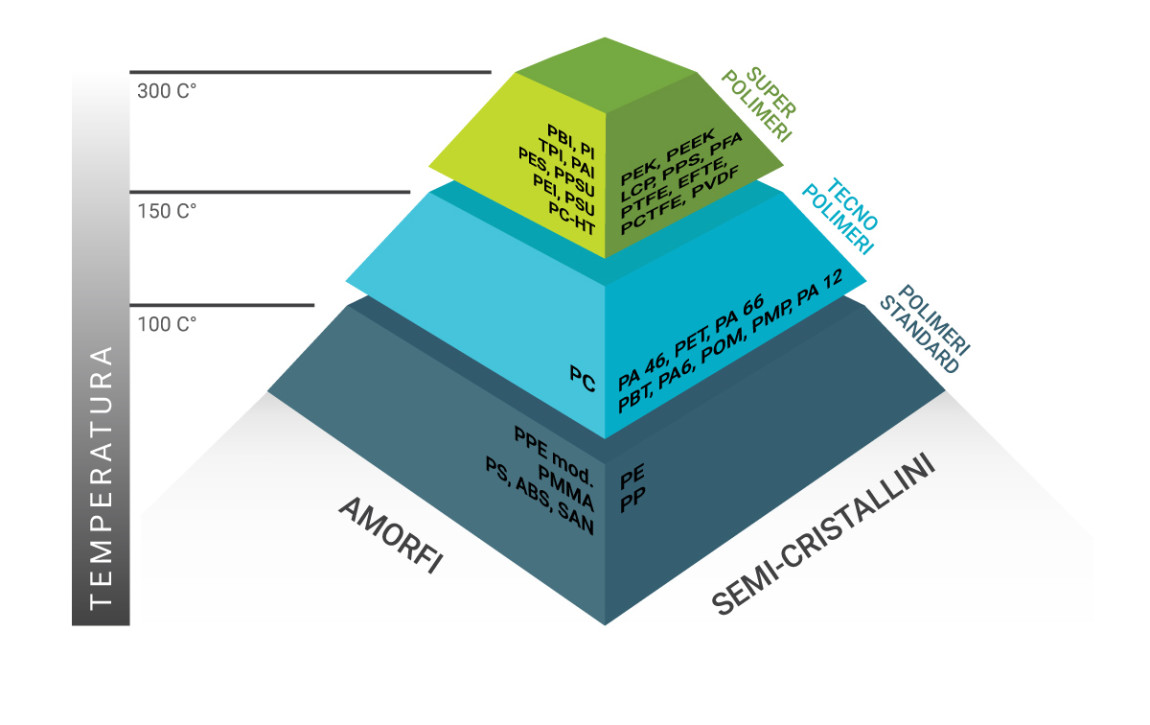 A differenza dei polimeri amorfi, caratterizzati da una transizione vetrosa, i polimeri semicristallini presentano una determinata temperatura di fusione. Tale caratteristica è il principale punto critico nell’applicazione dello stampaggio ad iniezione per questi tipi di materiale. Nel caso dei materiali amorfi è sufficiente che il polimero si rapprenda all’interno dello stampo per poterlo estrarre, mentre per i materiali semicristallini il processo di raffreddamento è più complesso. Infatti, per i secondi è necessario controllare la rampa di raffreddamento affinchè il materiale abbia il tempo necessario per riorganizzare le sue catene polimeriche e formare i domini cristallini.