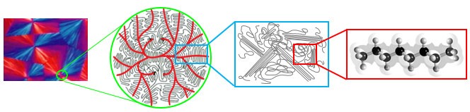 La plastica è un materiale amorfo, in cui le lunghe catene polimeriche sono organizzate in modo casuale all’interno della matrice del materiale. Questo è vero per la maggior parte dei polimeri, ma esistono numerose eccezioni, tra cui i polimeri semicristallini, in cui le catene polimeriche sono disposte in modo più o meno ordinato: si comportano come lunghi fili che si posizionano l’uno sull’altro secondo uno schema preordinato.