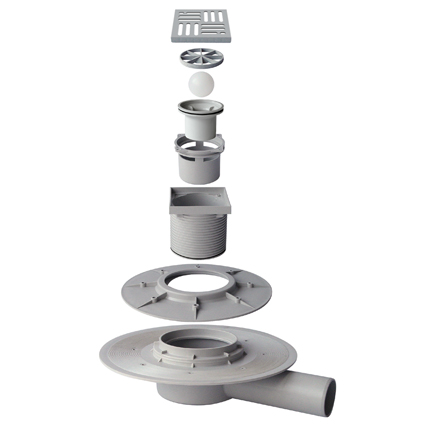 Chiusino sifonato per per lo scarico dell'acqua piovana o di lavaggio da superfici pavimentate come terrazzi, cantine o garage, bagni collettivi, ecc...